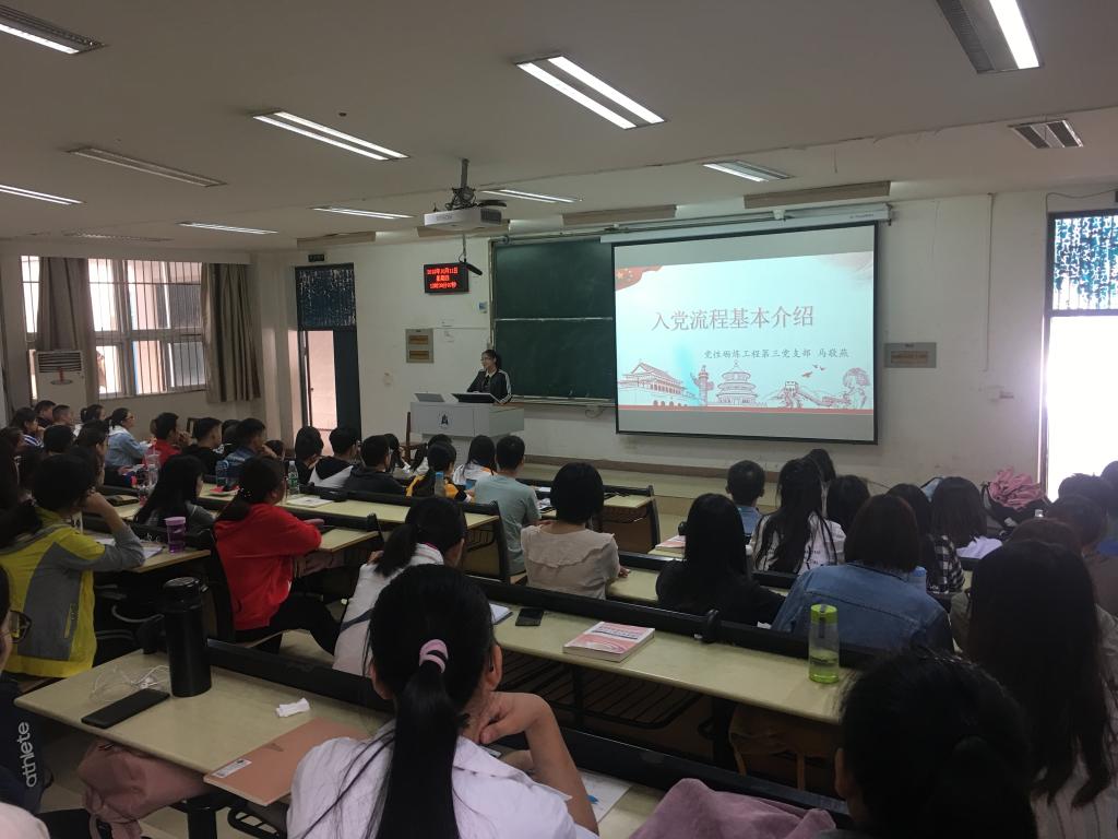 会前,组织部党章班负责人冯睿吉就党章班学员纪律、分组及主要学习内容进行了简要介绍。会议上,马敬燕以PPT演示的形式对入党条件及党员标准、入党基本流程、党员须知进行了全面介绍,并强调在向党组织靠拢的过程中端正入党动机,培养服务意识。