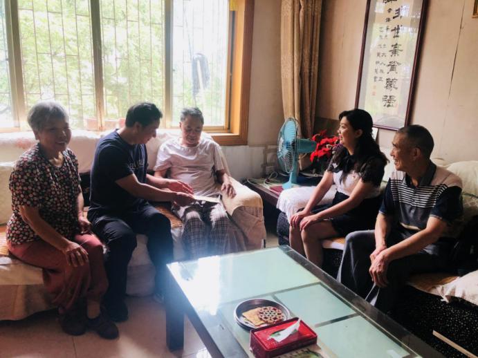为开展庆祝建党98周年系列活动,2019年7月1日上午9点,伟德国际victor1946党委书记焦颜成、党委副书记张丽娜、组织员李婉芝与伟德国际1946退休老干处同志一行前往退休老干部幸海华家进行慰问,给幸海华老师一家送去了党的关怀与温暖。