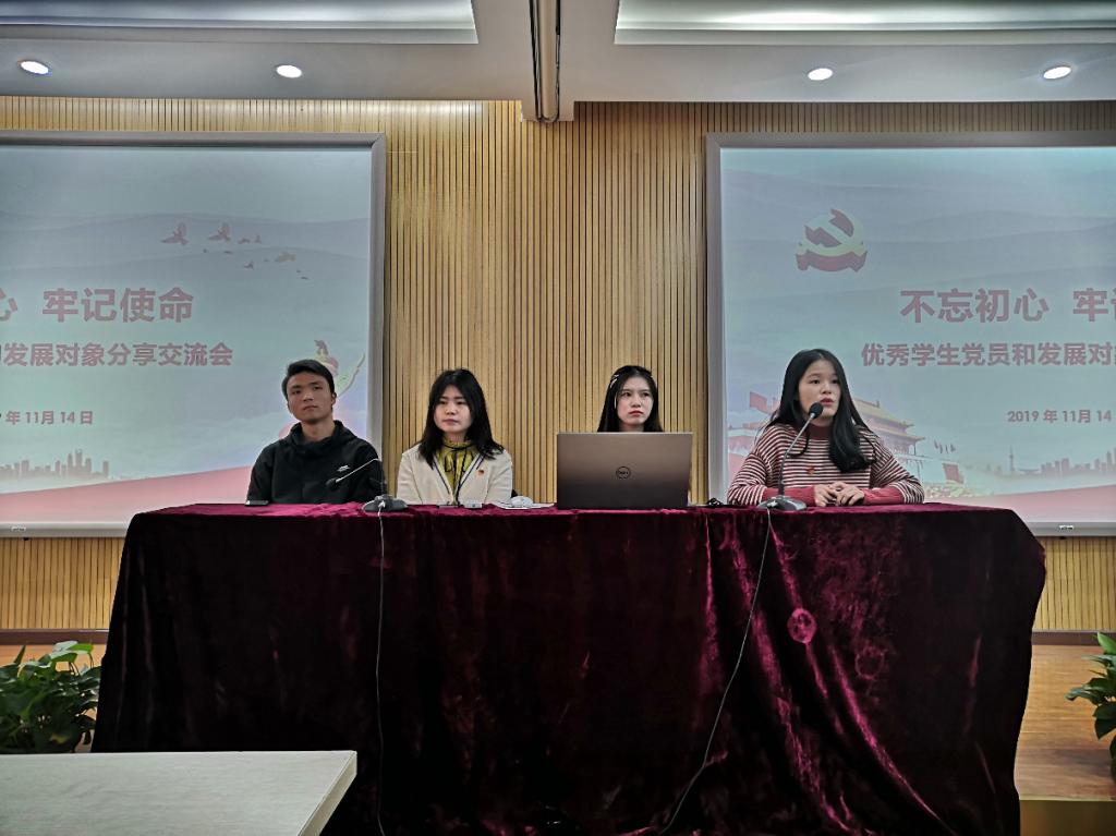 11月15日,伟德国际victor1946在逸夫楼C座2014开展“不忘初心,牢记使命——优秀学生党员和发展对象分享交流会”优秀党员代表郭星妮、杨周翰、贾琼琼、喻玺同志为伟德国际victor194683名发展对象带来了精彩纷呈的分享交流。