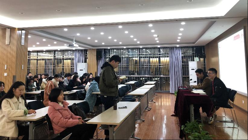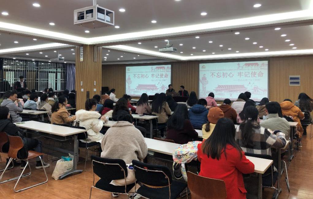 为了深入贯彻落实“不忘初心、牢记使命”主题教育思想,进一步促进研究生党员发挥先锋模范作用,2019年11月28日18:00,由土地资源管理及人资环研究生联合党支部主办的“不忘初心、牢记使命”研习进行时主题教育活动于逸夫楼C2014顺利开展。商学院全体党员及发展对象参与了此次学习活动。此次学习活动分为四项,依次是:全体起立,唱国歌;宣读入党誓词;介绍学习背景及意义,观看视频;讨论及发言。