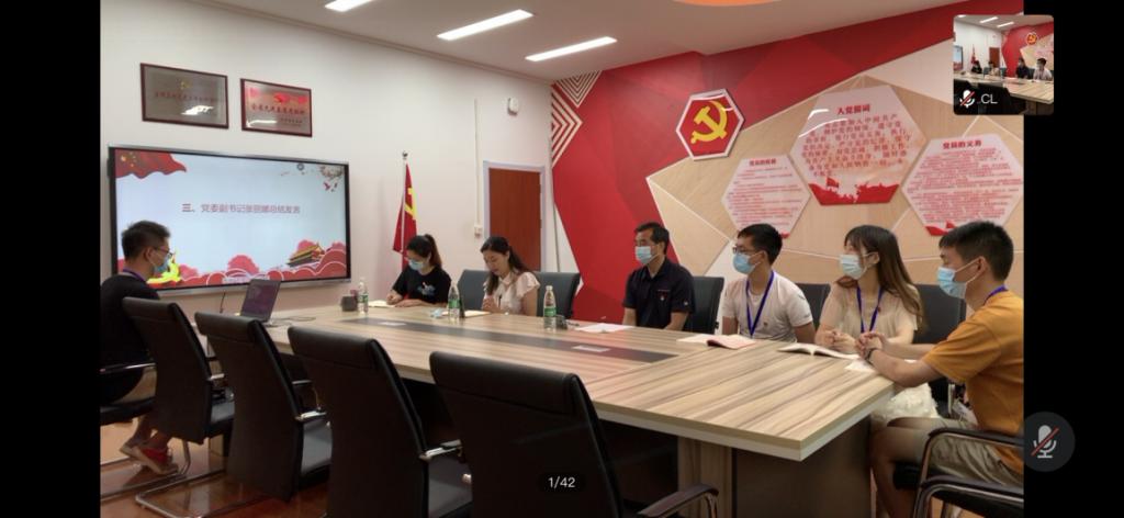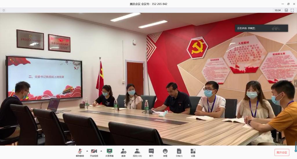 2020年6月30日上午,伟德国际victor1946党委组织学生党支部在逸夫楼党员活动室召开庆祝建党99周年线上主题党日活动。伟德国际victor1946党委书记焦颜成、党委副书记张丽娜、组织员李婉芝、现场的研究生党员代表和线上123位学生党员参加本次会议。会议采取线上线下结合的方式,分为三个部分进行展开。