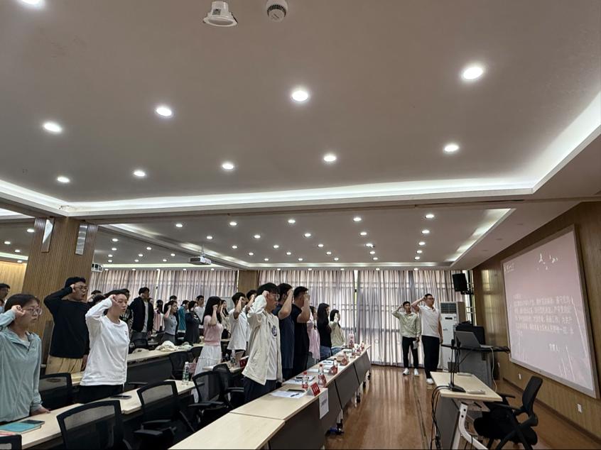 从援引毛泽东《水调歌头・游泳》解读体育文化精神,到共同探讨从“个人自律”到“强国之治”的党员答卷;从用数据解析“控糖与健康” 的科学逻辑,到健身健美冠军现场示范体态纠正动作…… 台上不同学科背景的分享者不断碰撞出火花,台下笔记本上的记录从 “体重管理年行动” 的政策要求,渐渐变成 “自律即党性锤炼” 的深刻感悟。当全体肃立举起右拳重温入党誓词时,我们意识到,原来强健体魄的每一次挥汗,既是践行健康中国战略的具体行动,更是以自律之姿承接强国使命的精神宣言。