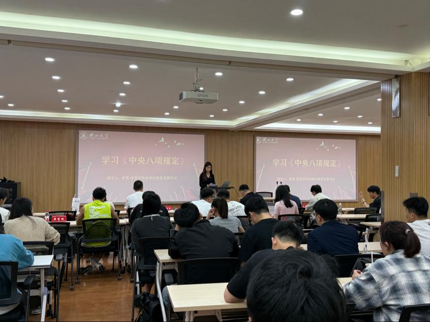 随后,体育学院本科体教社体党支部书记张逸歌带领大家集体学习《中央八项规定》,号召党员时刻绷紧纪律之弦,做作风建设的坚定践行者。
