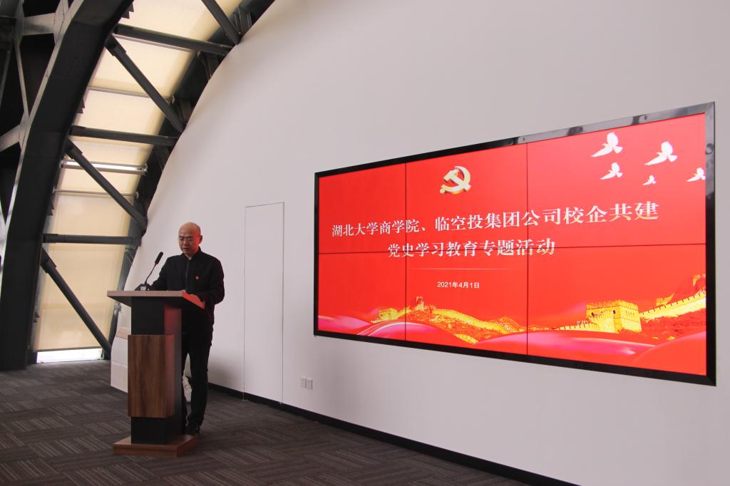 4月1日,伟德国际victor1946党委走进临空投集团公司,与该公司党委联合开展党建联建——“党史学习教育”主题党日活动。伟德国际1946副校长肖德,伟德国际victor1946全体领导班子成员、新一届教工党支部委员代表、学生党员代表一行40人以及临空投集团公司班子成员、中层干部和所属各单位班子成员参加了此次活动。活动由临空投集团公司纪委书记曾庆东主持。