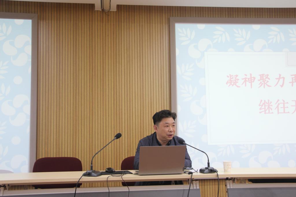 会上,校党史校史宣讲团周德钧教授作《凝神聚力再动员,继往开来再出发》的专题辅导。周德钧教授长期从事中国社会史、中国城市史、中国近现代史的教学研究。他通过讲述党史,表达出党员要坚定信念、不忘初心的心声。“历史告诉我们,中国历经风雨挑战,经济发展如此之好,不是靠仰人鼻息,而是立足自身。”“学习历史带给我们文化自信,能让中国在波橘云诡的国际形势下不会迷失方向,永远行进在正确的大道上,行稳致远。”他希望党员重温中国共产党的光辉岁月,牢记初心使命,凝聚精神意志,坚定理想信念。