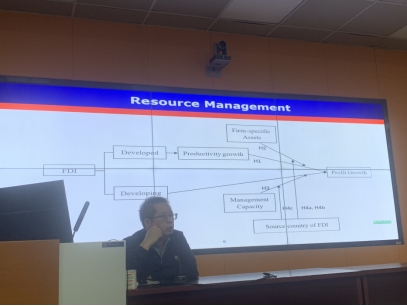 讲座中,杨勇教授分享了营商环境与数字企业国际化的学术成果以及英文学术论文的写作、投稿经验。首先杨教授介绍了跨国企业区位选择的影响因素,他指出跨国企业的投资行为影响企业利润增长率应从产出增长率、企业持有资产、管理能力和FDI来源国四个角度综合考虑,另外从内部化理论,以知识和资源为基础的企业视角解释了跨国公司为什么会存在的问题;接着杨教授介绍了数字化企业的国际化发展现状以及研究框架,提出东道国制度环境对外资子公司的影响一直是外资管理的核心问题,并分享了他的研究观点;最后,杨教授关于英文学术论文的投稿从提交阶段之前、提交阶段之中、提交阶段之后、收到审稿人建议后、修改阶段中、重新提交之后六个阶段给我院师生们做出了详细的介绍和相关注意事项。