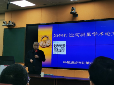 高主编从《科技进步与对策》的创刊与发展、主要评价、学术影响力、审稿流程、与作者沟通等方面做了概括性介绍,让大家全面了解了投稿过程及注意细节。同时,他从审稿专家的角度,着重介绍了学术论文的写作方法与要求,并对论文的标题、作者信息、摘要、关键词、作者简介、正式格式、参考文献等每个环节进行了详细阐述。他还与师生分享了对当前科技发展趋势的几个基本判断及选题建议。
