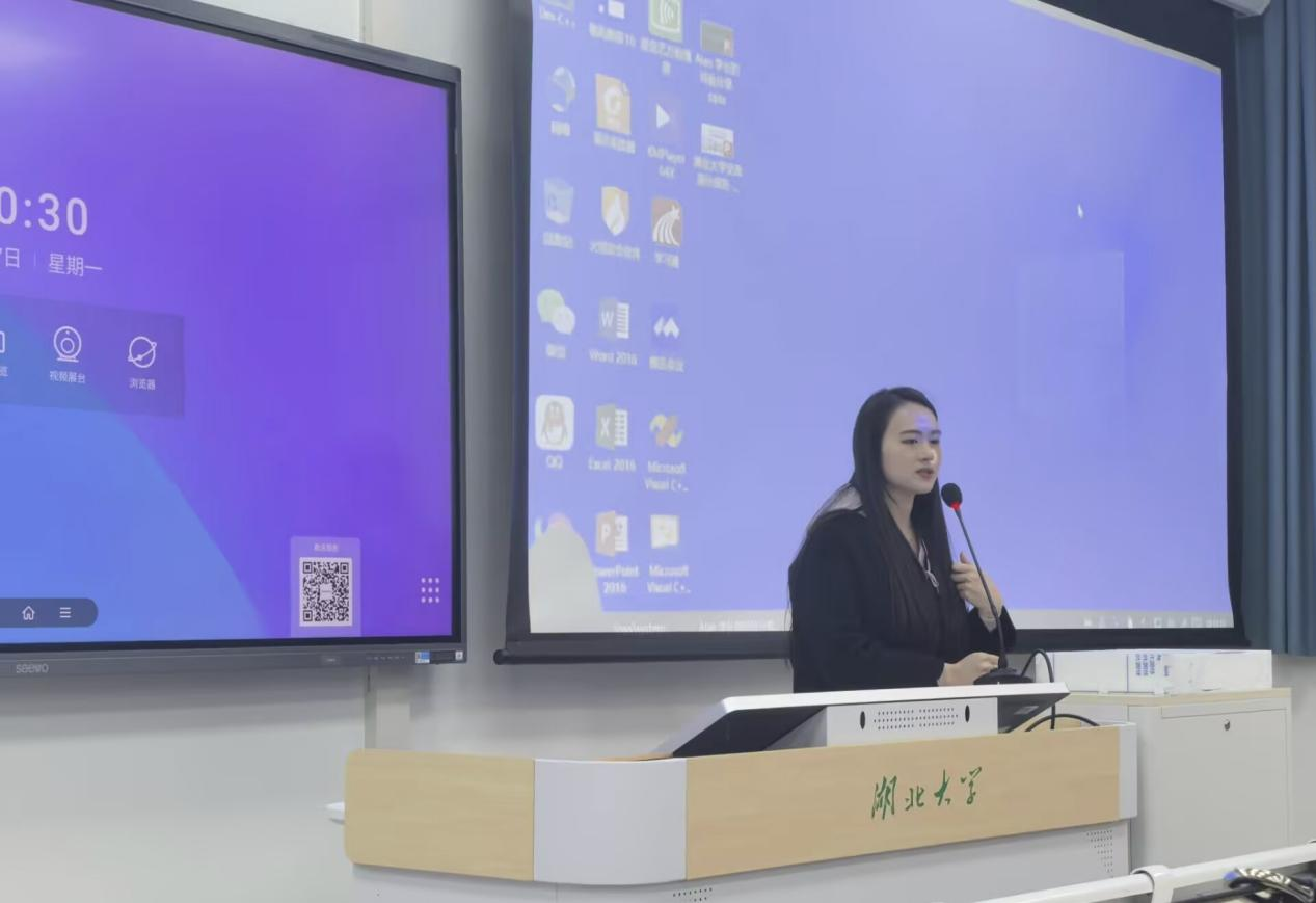 第一位分享的校友是2014级经济学专业毕业生阎皓月,现进入湖北交通投资集团工作。她通过分享自己及朋友通过实习成功转型的经历,强调“专业只是敲门砖,真正决定你职业方向的是你的实习经历和实际能力。”她还提到,“职场中的挫折是常态,你需要一颗强大的心去应对。在大学期间,多去体验生活,锻炼自己的心理素质,为未来的职场生活做好准备。”