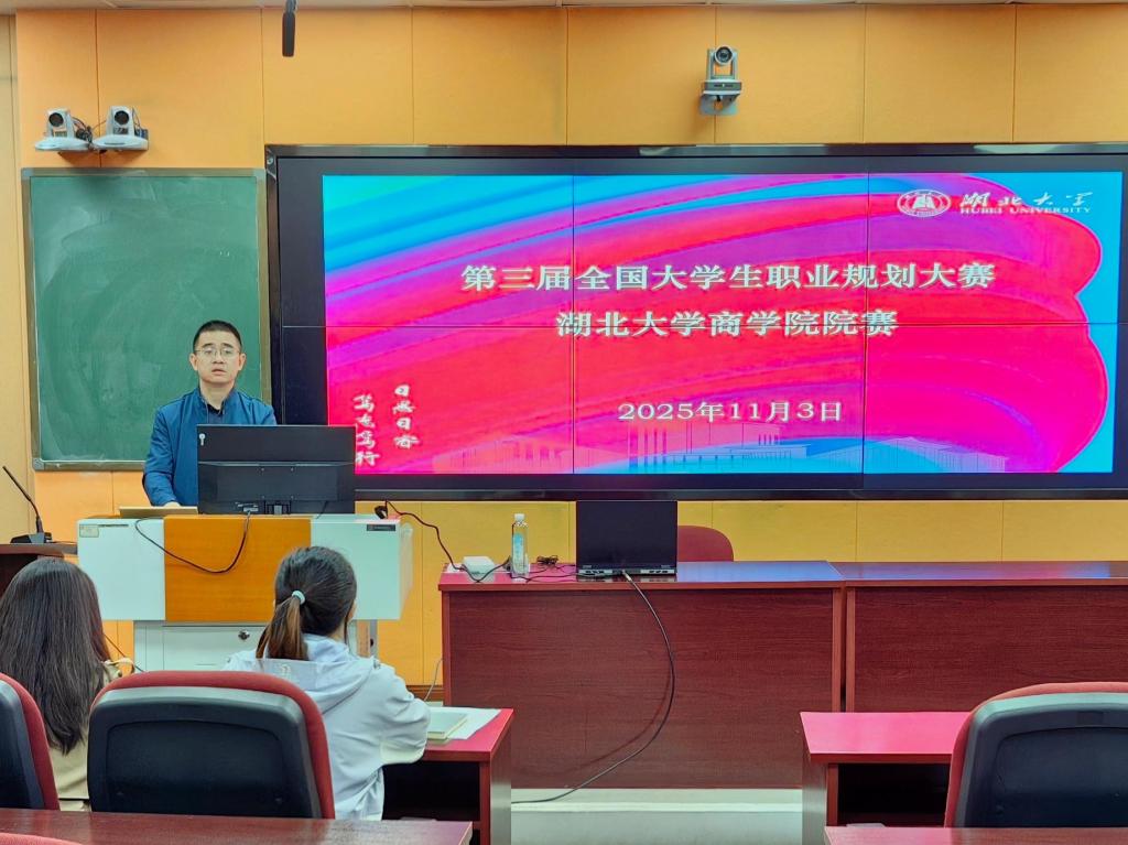 为响应教育部“强化高校生涯教育和就业指导”号召,落实“以赛促学、以赛促教、以赛促就”育人理念,帮助学子破解成长迷茫、提升职场竞争力,11月3日晚,第三届全国大学生职业规划大赛院赛在学院C2012会议室隆重举行。学院党委副书记马兴建、学校学生发展与就业指导中心王斌、校学工部(处)涂雅以及学院辅导员代表担任评委。