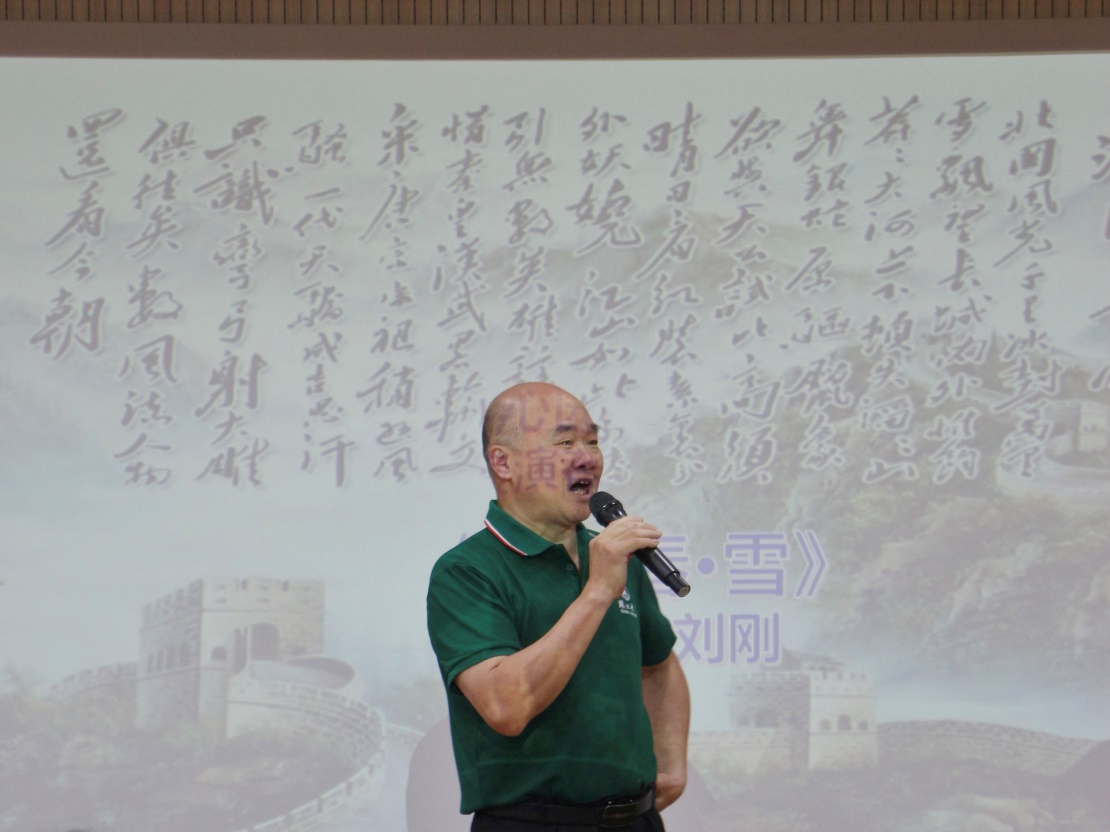 徐学俊、刘刚和郑玉美等3位老教师通过演唱和朗诵的形式为大家带来了《送别》《沁园春·雪》和《我爱你中国》等经典文艺作品,充分抒发了对革命领路人的崇敬,歌颂了中华民族英勇奋斗的壮丽史诗,把对伟大祖国的崇高之爱演绎得淋漓尽致。