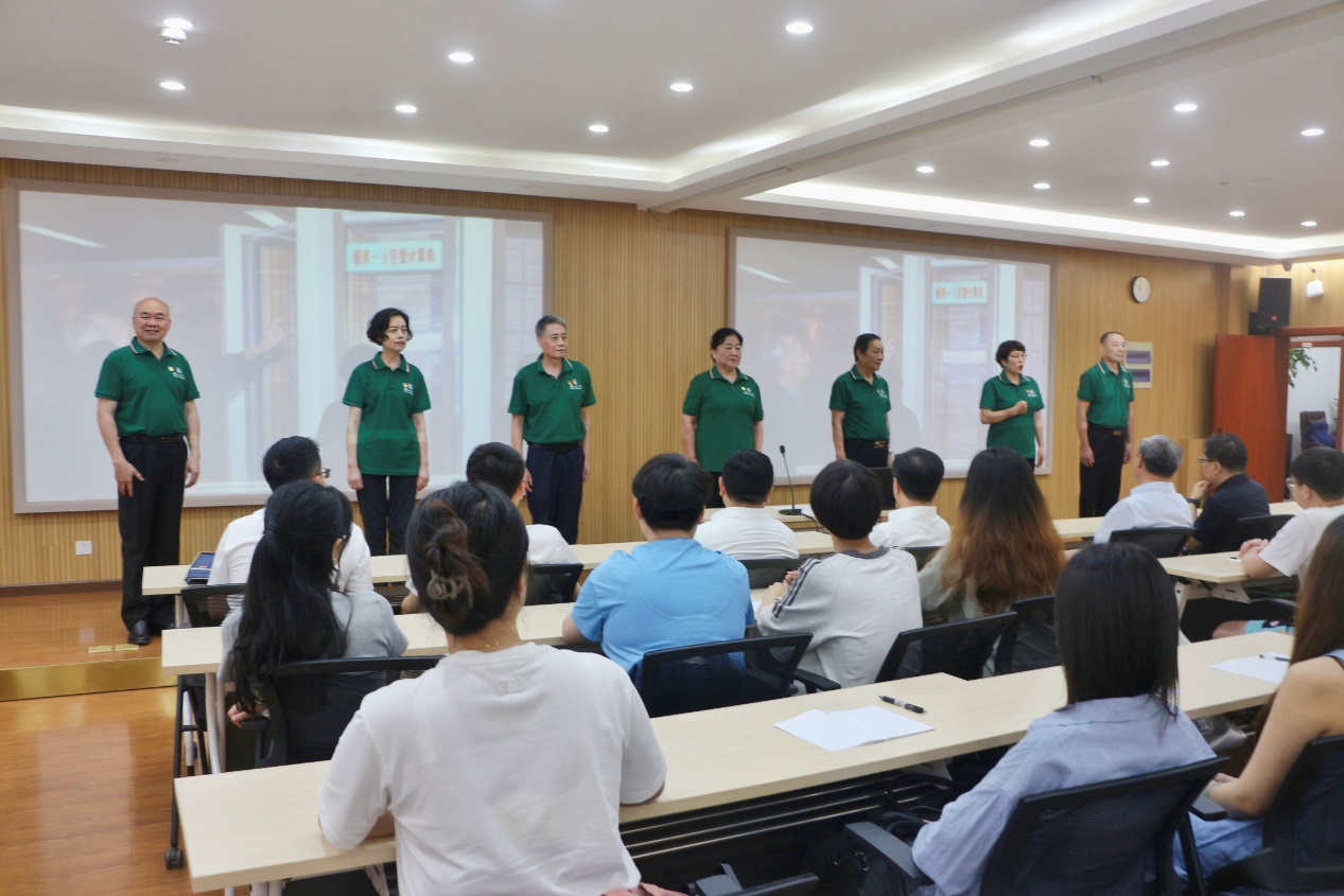 此次活动中,学院邀请到了伟德国际1946关工委老教授红旗说唱团以“歌声中的红色传承”为主题,以说党史、唱红歌的生动形式为毕业生党员带来了一场别开生面的党课。