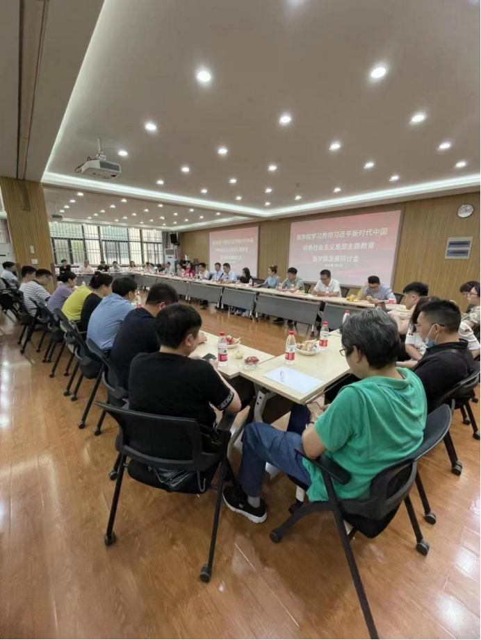 7月3日下午,学院在逸夫楼C2014报告厅召开学习贯彻习近平新时代中国特色社会主义思想主题教育暨学院高质量发展研讨会。学院党委委员、系支部书记、系主任、学科负责人、学位点负责人、专业学位负责人、人才代表等近50参加会议。
