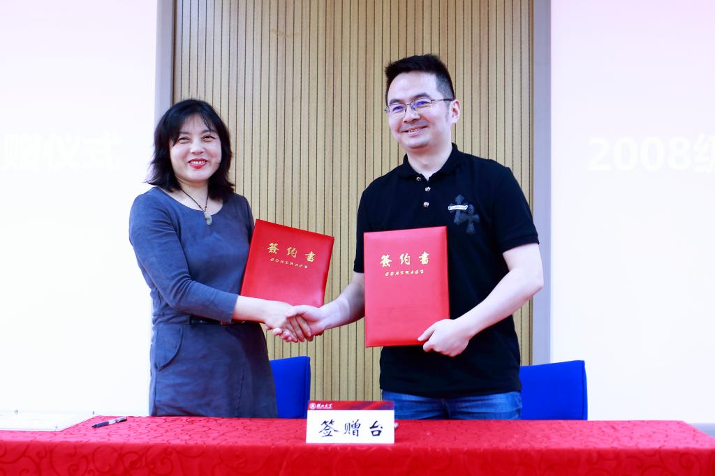 伟德国际1946教育发展基金会秘书长金梅与校友代表签订捐赠协议书,并向他们颁发捐赠证书。四位校友代表先后上台,以真挚情感、诙谐幽默的语言分享了他们在母校的成长故事和个人工作事业发展的经验,勉励师弟师妹们珍惜学习机会、拓宽求职视野、把握生活节奏,校友的发言赢得与会师生的阵阵掌声和笑声。