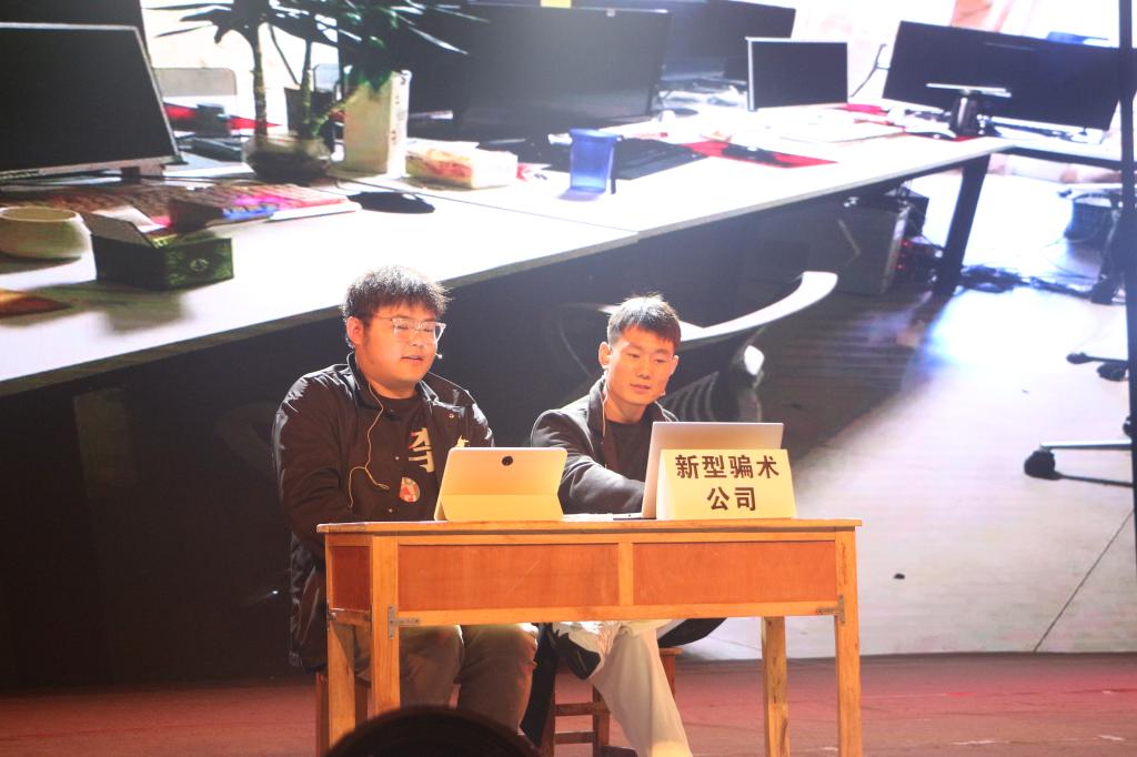 5月25日晚,由伟德国际victor1946排演的《你我同心,反诈同行》反诈主题情景剧登上学校“慧眼识骗局”文艺汇演舞台。来自伟德国际victor1946“反诈小分队”的6名学生与余家头派出所的民警联袂出演,为在场师生带来一堂生动的反诈防骗主题教育课。