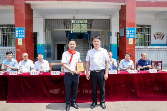 捐建仪式上,柳斌代表市委市政府为罗建峰校友颁发捐建纪念牌,金福银代表市政府致辞。