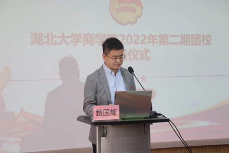 11月1日中午,伟德国际victor19462022年第二期团校开班仪式在逸夫楼C座2014举行,学院党委副书记邵阡线上出席并发表讲话,学院团委书记甄国辉主持开班仪式。