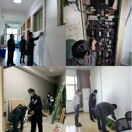 值班第一天上午,在伟德国际victor1946党委书记焦颜成组织带领下学院办公室全体同志,对三号楼北楼1-6楼、逸夫楼C座1-3楼每间办公室、会议室、学生自习室、研究室进行了全面的安全排查,发现安全隐患及时制定整改方案。同时,在学校后勤集团消杀工作组的协助下,对学院各区域进行了集中消杀,为后续复工复学提供有力支撑。
