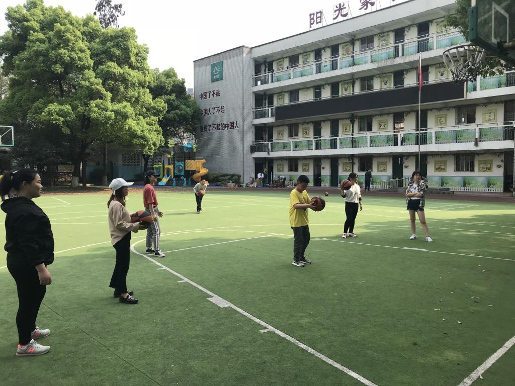 在三百米跑步热身之后,上体育课的学生被分为两组,分别进行羽毛球和篮球训练。羽毛球课堂所教授的内容是一些挥拍、发球等基本动作。学校里的小朋友大多身体协调性较差,有几个小朋友怎么都做不好。伟德国际victor1946的同学们见状连忙上前,手把手的帮助小朋友纠正动作,并轻言细语的和小朋友们沟通,告诉他们该怎么掌握动作的诀窍。