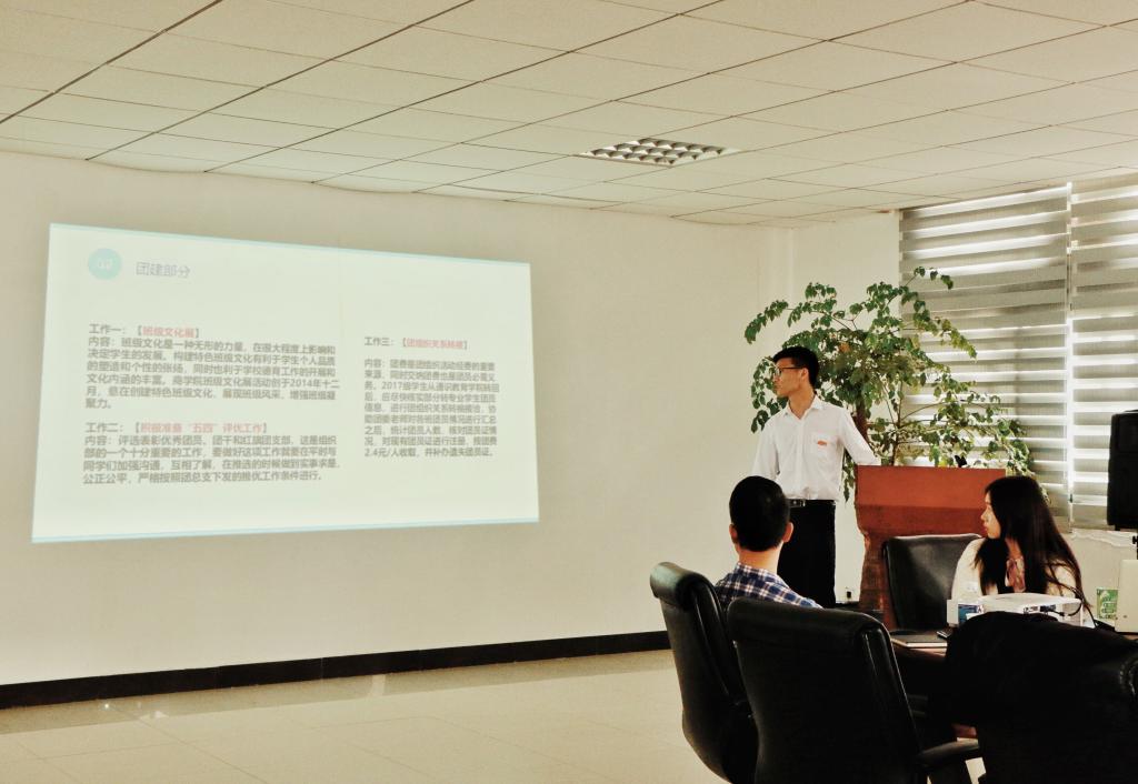 在湖北经济学院旅游与酒店管理学院学生会介绍完毕后,我院学生会组织部团委副书记熊应然详细介绍了我院的组织架构,部门职能和特色活动。最后我院学生会公共权益部主席李晋对此次交流进行了总结,表达了以后继续交流,争取合作的希望,并表示了对湖北经济学院旅游与酒店管理学院的热情招待的感谢。