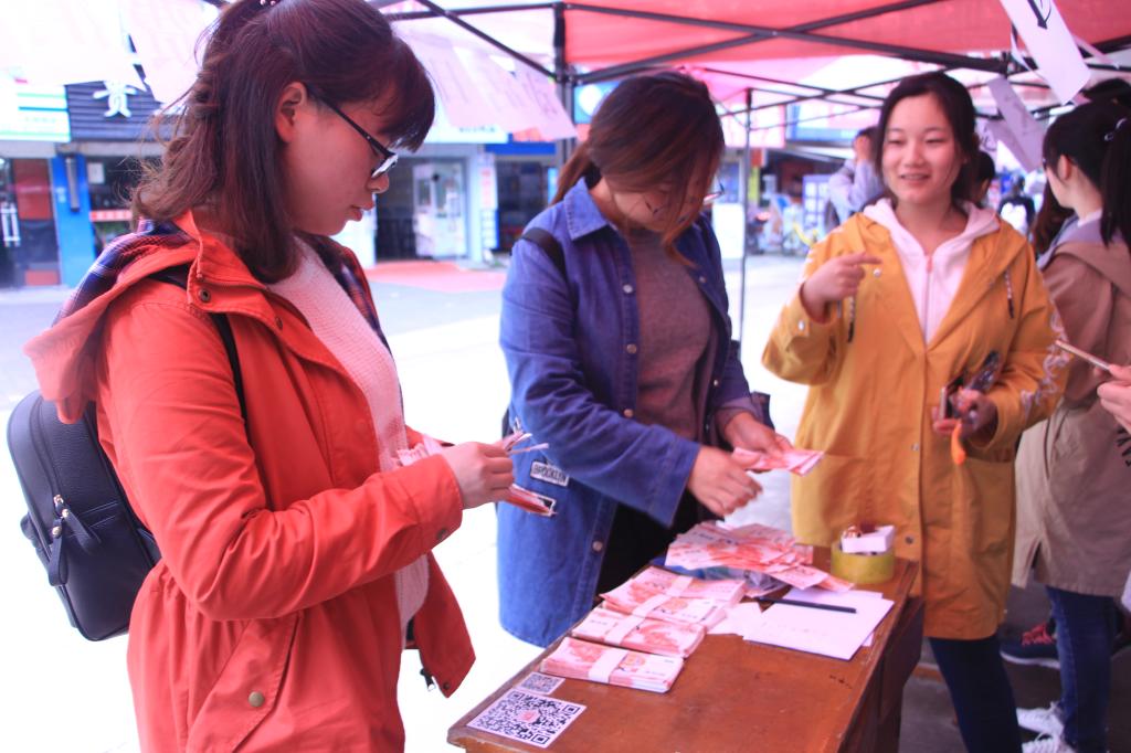 “一张,两张,三张……总共四十六张钞票。”“恭喜你完成挑战,用时21秒。”活动刚开始,现场就被学生围了起来,场面十分火爆, 在趣味点钞游戏中,不少学生为了加快速度而数错了金额,连连叹息,也有的学生不紧不慢,取得了好成绩。“请问我国的‘三包’政策是哪‘三包’?”在消费知识竞赛中,不少学生在这一问题上失误,与奖品失之交臂。2016级市场营销专业的胡志辉迅速完整地答对了这个问题,以90分的成绩暂居第一。