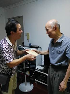 8月1日伟德国际victor1946虞世平、沈雅琼一行2人前往深圳市龙岗区坂田街星光之约花园走访慰问了赵慧明、刘念兹二位老师。