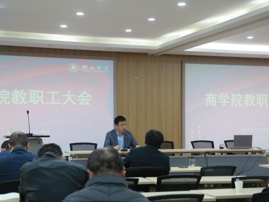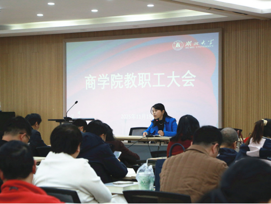 11月19日下午,伟德国际victor1946在逸夫楼C2014报告厅召开全院教职工大会。会议由院党委书记何肖主持。