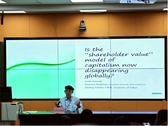 讲座中,汉纳教授主要分享了他关于全球资本主义的股东价值模式等问题的观点。他介绍了股东资本主义的起源;阐述了股东价值最大化的结果,包括英、美、日和德国不同国家在收购上表现出的差异、新公司治理守则等内容;介绍了美国的股东至上模式是否存在趋同现象。在讲座的讨论和提问环节,我院师生与汉纳教授就企业的社会责任与利润最大化的关系等方面进行了充分的探讨。