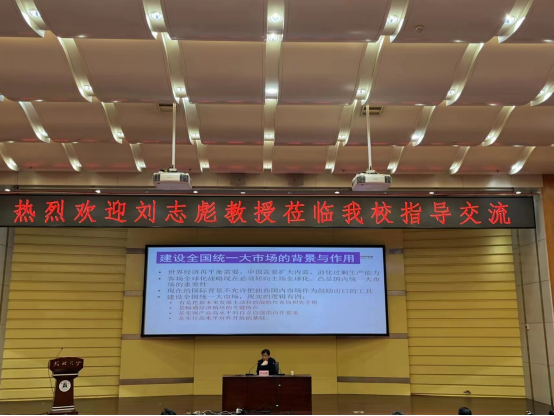 1122上午,南京大学长江产业经济研究院刘志彪院长在会议中心思睿厅作题为全国统一大市场与新发展格局的学术报告。讲座前,校长刘建平与刘志彪教授进行了座谈,主要就学科建设、智库建设等进行了交流,并对刘志彪教授的到来表示欢迎和感谢。报告由伟德国际victor1946副院长程时雄教授主持,伟德国际victor1946党委书记邵俊青、相关学科专业老师、学生等百余人参加本次讲座。