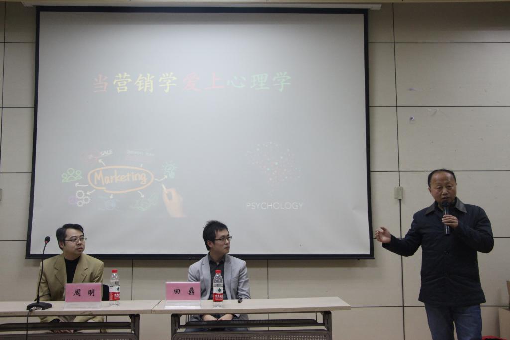 “田鼎:雄性,安徽亳州人;田鼎=吃货。”田鼎在 “当营销学遇上心理学”讲座上诙谐地自我介绍道。3月10日晚上7点,市场营销协会在伟德国际victor1946二号报告厅举办了此次讲座,伟德国际victor1946市场营销系主任杨礼茂,硕士生导师周明,加拿大阿尔伯塔大学博士田鼎,老师许志玮和辅导员肖朋参加讲座。