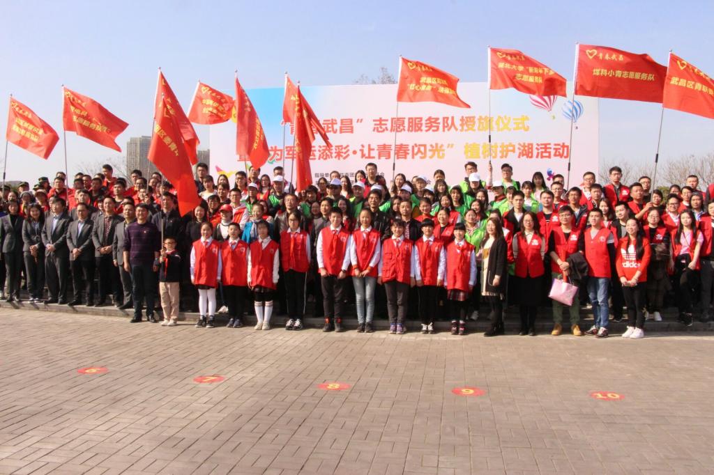 3月12日下午三点,正值植树节,由共青团武昌区委员会和武昌区青年联合主办,区城管委、徐家棚街团工委以及沙湖公园管理处协办的“青春武昌”志愿服务队授旗仪式暨“为军运添彩·让青春闪光”植树护湖活动在沙湖公园正式举行。区政协副主席陈鹏南、区文明办主任杨霞、徐家棚街党工委书记金光伟等人出席了本次活动,伟德国际1946等单位的200名青年志愿者组成了13支代表队参加了本次活动。