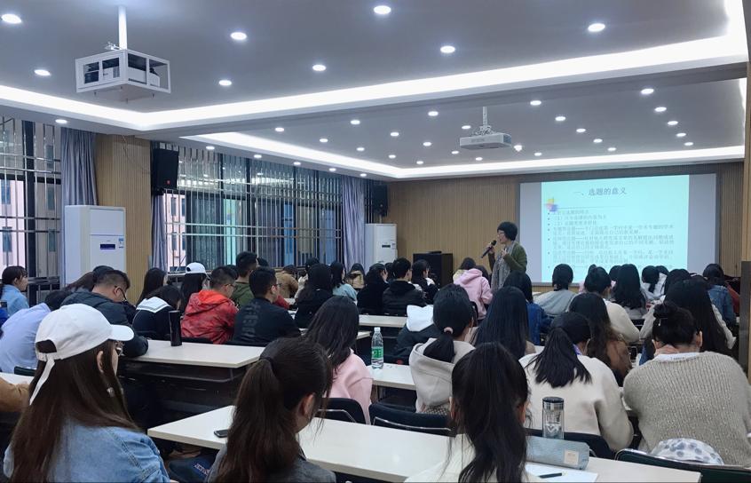 陈汉林从社科论文的选题引出了此次讲座的内容。她用“题好文一半”强调了选题的重要意义,重点介绍了选题的途径、步骤和方法。陈汉林告诉同学们课上要认真学习专业课程,并在学习心得体会中形成论文选题;课下要深入学习,从学科发展的前沿去选题等;另外,她建议同学们多参加社会实践,在体验中捕捉影响社会发展和人们生活质量的问题。接着陈教授给同学们介绍了文献综述,区分了文献综述与“读书报告”、“文献复习”和“研究进展”,表明了写综述的意义,总结了文献综述的写法。最后她提醒同学们要注意引用文献的代表性、可靠性和科学性,引用文献要忠于文献内容,不能省略参考文献等。为方便同学们理解,陈教授还给出了两个有代表性的文献综述,对照实例进行了详细的讲解。
