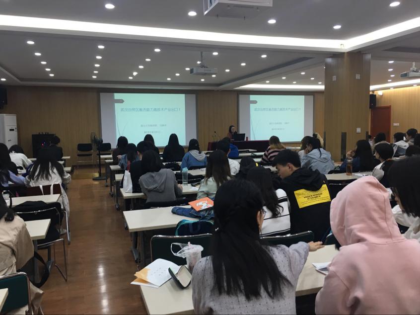 4月21日,伟德国际victor1946“双创”沙龙在逸夫楼二楼开讲,伟德国际victor1946国际经济与贸易系主任冯晓华副教授为伟德国际victor1946学子展开了一场主题为“武汉自贸区能否助力高技术产业出口”的讲座。