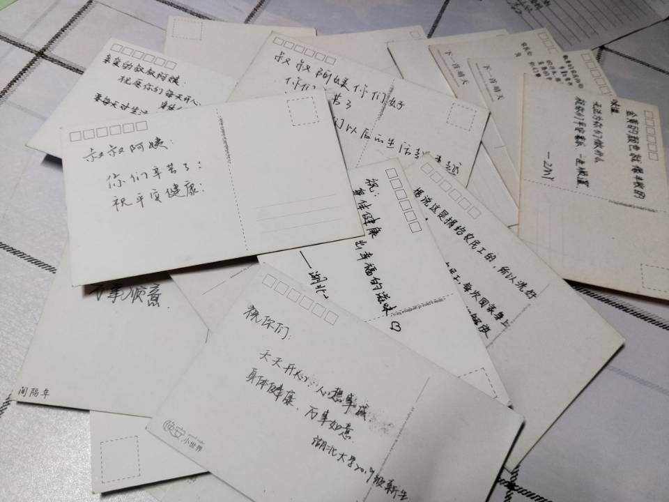10月11日,院志协成员前往阳逻校区回收军训服。活动现场,前来捐赠军训服的学生络绎不绝,短短4个小时内,院志协共收到400余套军训服。2019级金融学专业刘聪同学说,他在国庆假期期间看到宿舍楼下都晾着成套的军训服,由此了解到该活动并参与其中,便立即将自己的军训服整理干净,期待着把它们捐给有需要的人。“叔叔阿姨,您们辛苦了!我也是农民的孩子,所以我很清楚农民劳作的艰辛,我希望这小小的心意能为您带去更多的欢乐。”除捐献衣物外,同学们还在卡片上写下了对受捐者的祝福语,表达对他们辛勤劳作的感谢,寄出秋日里的关怀和温暖。12日晚,军训服已全部捐赠出去。