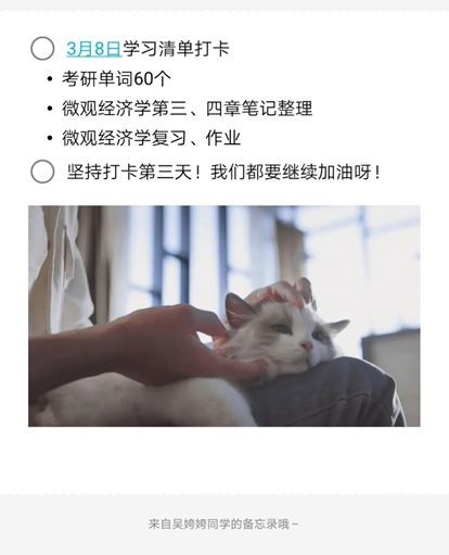 我开始频繁主动地找小可欣聊天,和她分享自己的“多吃米饭攻略”和每日晚餐,她也渐渐地愿意和我说起学习以外的事情。我们会一起讨论我们都喜欢的歌星——华晨宇;会一起吐槽沙雕表情包的滥用;会不约而同地说起我们都喜欢的电视剧《庆余年》;并且在考虑到小可欣周一到周五满满的课程安排和我正在进行的考研复习之后,我们商量,每天晚上十点之前都和对方打卡自己的每日学习清单,相互鼓励,相互监督,共同进步。