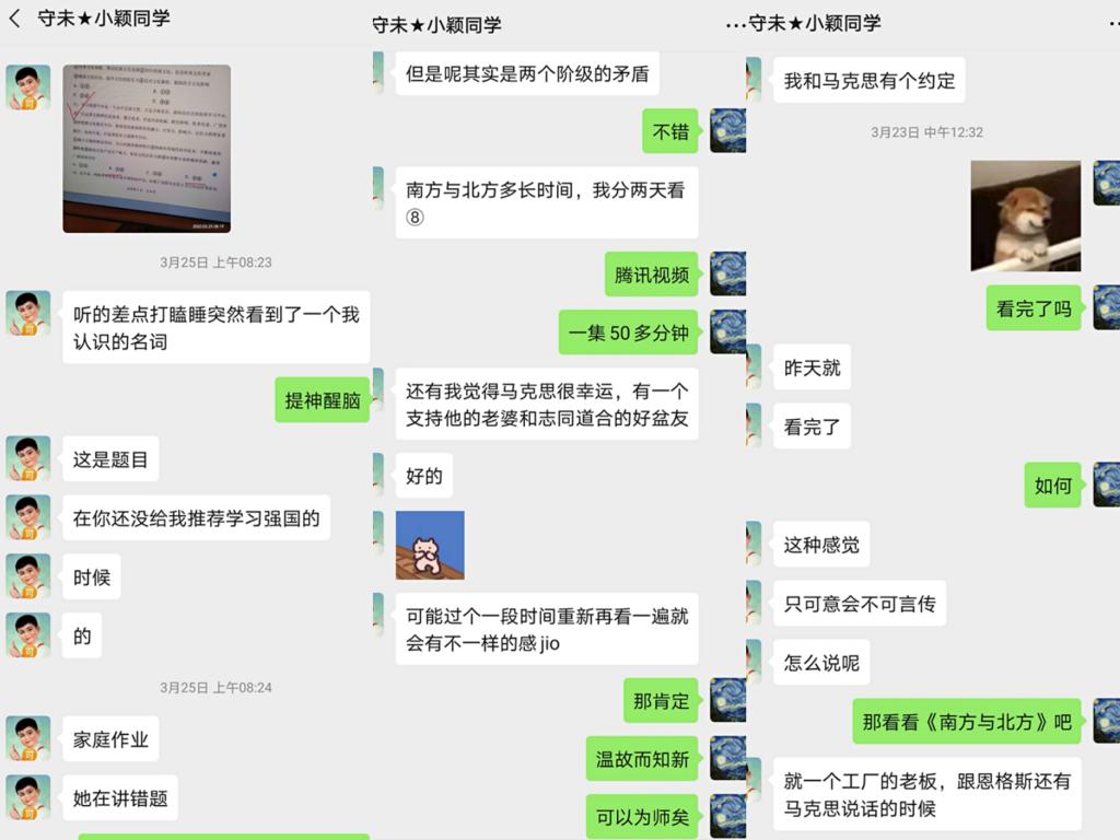 受疫情影响,小雅同学隔离在老家生活。相比于以前通过家长联系,这一次我改变了方法,征得家长同意后直接与小雅同学联系,在了解了她的兴趣和薄弱学科以后,我们商量制定了英语和数学计划。一开始她不太好意思面对错误,于是我和她聊了我以前和错误斗争的经历。慢慢地,通过以错题带动同类型题目的学习,她找到了不少信心,她告诉我:“错误其实不可怕,只要敢于面对并努力克服它,错误就能成为我们进步路上的铺路石。”我激动不已,由衷为她感到高兴。后来慢慢熟悉了,发现她不太爱学地理,我们便以旅游为话题进行天马行空地提问与对答,彼此对地理都有了新的理解。